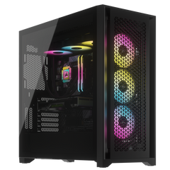 The Corsair iCUE 5000D RGB Airflow is a mid-tower ATX case engineered for exceptional cooling performance and vibrant RGB illumination. Featuring a high-airflow front panel, three included AF120 RGB ELITE fans, and an iCUE Lighting Node PRO controller, it ensures both optimal airflow and extensive customization options